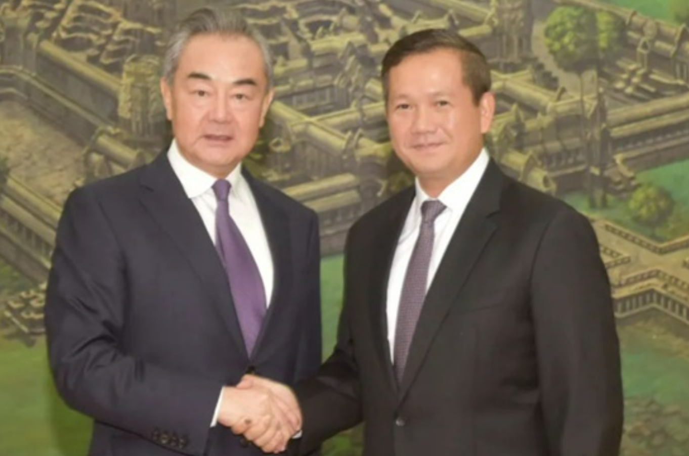 좌 - 왕이 중국 외교부장, 우 - 훈마넷 캄보디아 총리
