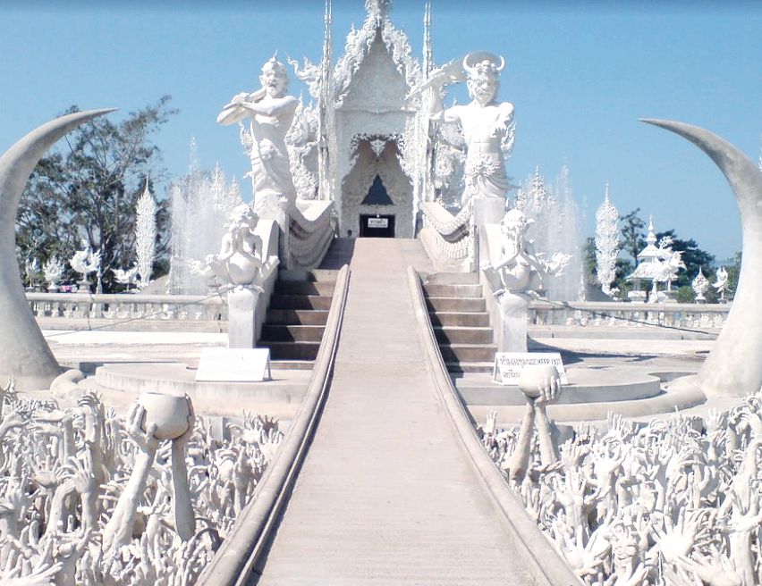 왓 롱쿤 (백색사원) : 지옥을 건너 천국으로 향하는 경험. 순백의 사원이 자아내는 비현실적인 아름다움에 압도될 것이다.