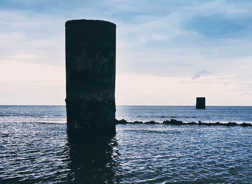 그곳에는 마치 버려진 등대처럼, 두 개의 낡은 콘크리트 기둥이 덩그러니 솟아 있습니다.