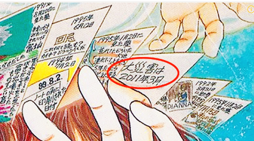 2011년 3월 동일본 대지진 : 그녀는 1999년 초판 표지에 2011년 3월 대재해 라는 문구를 명확히 박았습니다. 당시에는 아무도 주목하지 않았던 이 문구는, 2011년 3월 11일, 일본 관측 사상 최대인 규모 9.0의 지진과 쓰나미가 도호쿠 지방을 덮치면서 일종의 성지가 되었습니다.