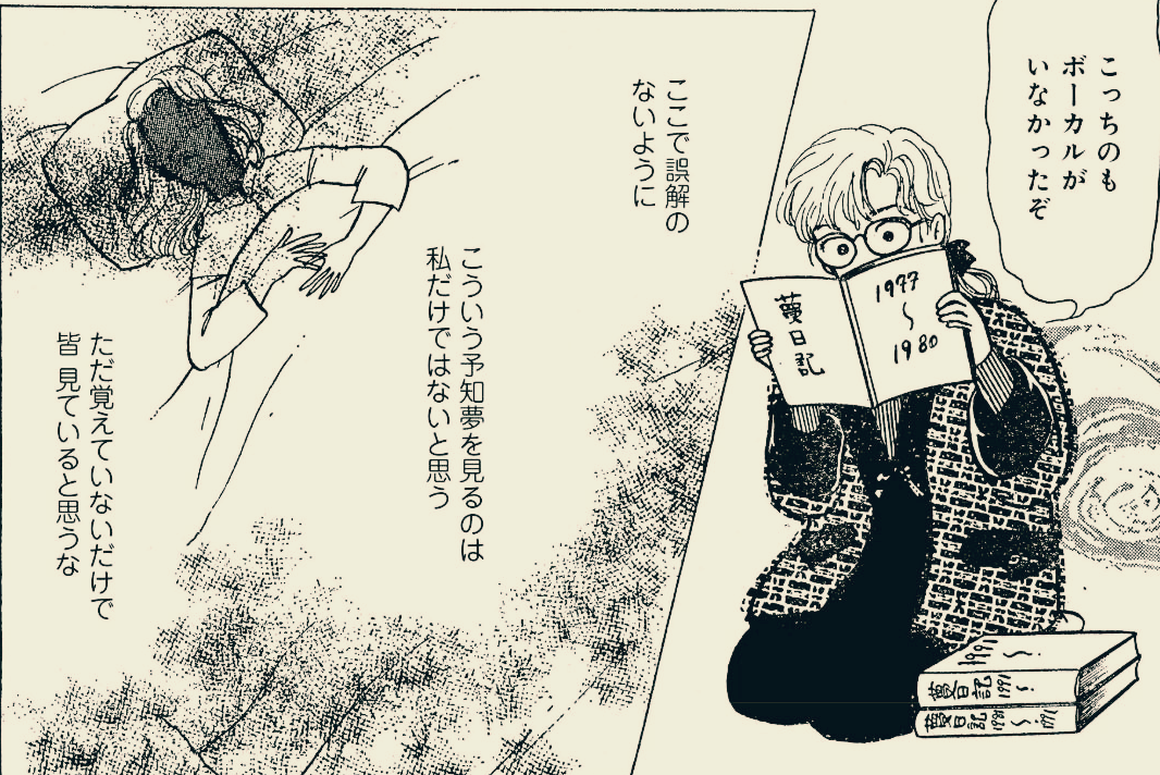 1995년 1월 고베 대지진 : 그녀는 1995년 1월 2일, 대지가 갈라지는 꿈을 꾸었고, 정확히 15일 뒤인 1월 17일, 고베 지역에서 수천 명의 목숨을 앗아간 대지진이 발생했습니다. 만화책은 1999년에 출간되었지만, 작가가 꿈을 꾼 시점은 1995년 고베 지진 이전이라고 인터뷰한 바 있습니다. 꿈 일기엔 고베와 갈라진 대지 등 단어가 언급되어 있었습니다.