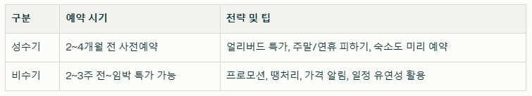 성수기(11월~2월, 연휴 등) : 최소 3~4개월 전 얼리버드 특가를 노리세요! 망설이는 순간, 좌석은 사라집니다.
