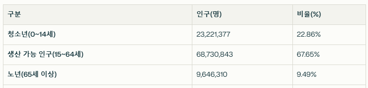 현재 (2025년) : 65세 이상 고령 인구 비율 약 9.3%, 고령화 사회 진입