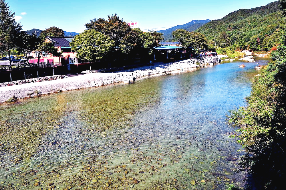 특징 : 수심이 깊지 않고 물살이 완만하여 아이들과 함께 안전하게 물놀이를 즐기기 좋습니다. 바위 위에 앉아 발만 담그거나, 시원한 그늘 아래 돗자리를 펴고 책을 읽으며 여유를 만끽할 수 있습니다.