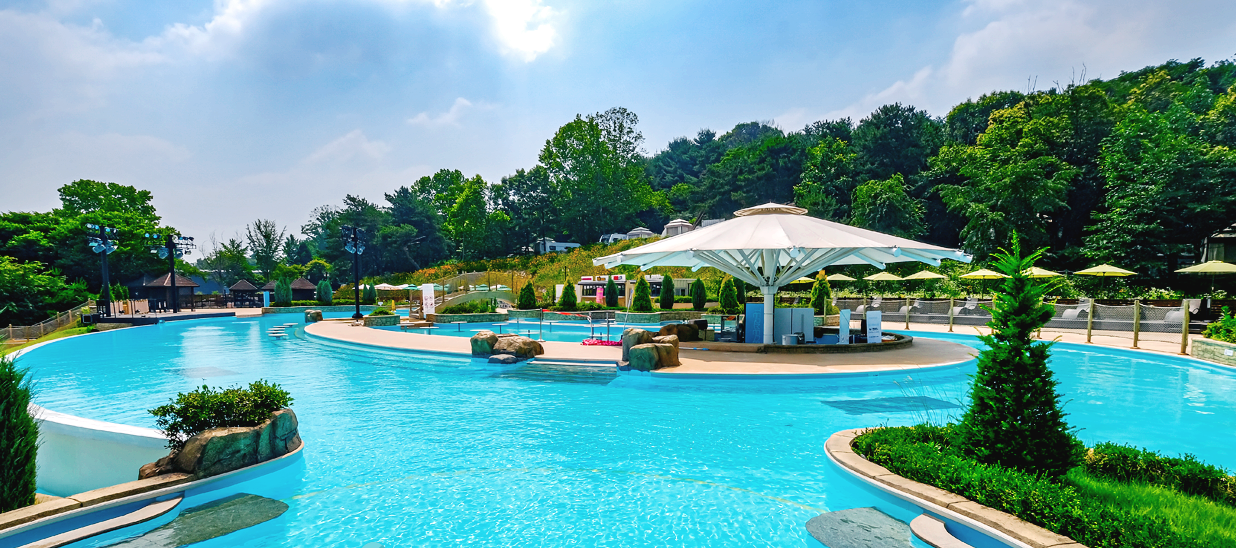 특징 : 독일식 바데하우스를 테마로 한 대규모 온천 워터파크입니다. 사계절 내내 운영되는 실내외 온천풀은 물론, 다양한 물놀이 시설과 삼림욕장까지 갖춰져 있어 온 가족이 함께 힐링하기 좋습니다.