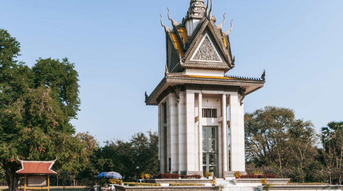 초응에크 학살 센터, 흔히 Choeung Ek라고 불리는 이곳은 캄보디아 프놈펜 외곽에 위치한 전 킬링필드다. 이곳은 1975년부터 1979년까지 크메르 루주 정권이 수많은 사람들을 학살한 장소로, 캄보디아의 역사에서 가장 어두운 시기를 상징하고 있다. 1975년부터 1979년까지 초응에크는 과수원과 중국인 묘지였으나, 크메르 루주 정권이 이곳을 학살 장소로 사용하게 된다. 대체로 투올 슬렝(S-21) 감옥에서 온 수감자들이 이곳으로 이송되어 학살되었다고 알려져 있다. 학살은 주로 곡괭이, 대나무, 칼 등으로 이루어졌으며, 이는 총알을 절약하기 위한 방법이라고 전해진다.