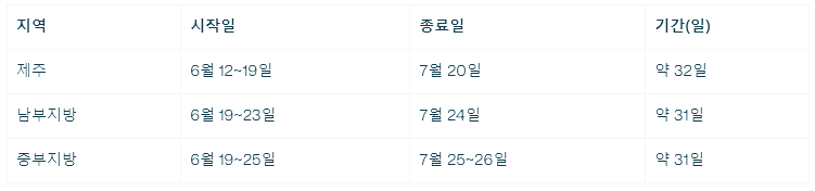 남부지방 (전라, 경상권) : 6월 23일경 시작