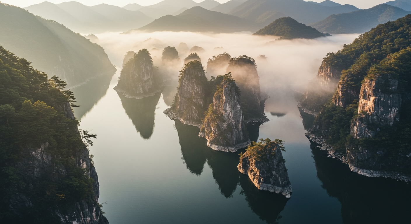 충북 단양은 산과 강이 어우러져 한 폭의 동양화를 연상시키는 곳입니다. 특히 유유히 흐르는 남한강과 그 위로 솟아오른 기암괴석들은 드론으로 담았을 때 그 웅장함이 극대화됩니다.