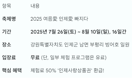 2025 인제 여름 축제 완벽 가이드: '여름愛 인제愛 빠지다'부터 주변 가볼 만한 곳 총정리