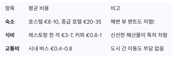 한 줄 요약: 저렴한 비용으로 지중해 휴양과 역사 탐방, 트렌디한 도시 감성까지 모두 잡고 싶은 욕심쟁이 여행자에게 강력 추천!