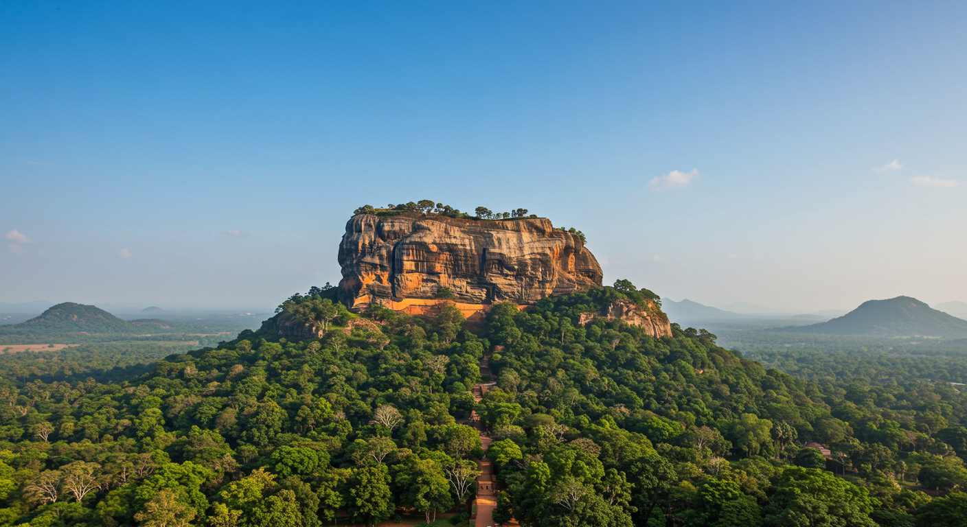 광활한 평야에 우뚝 솟은 거대한 바위산, 그 꼭대기에 지어진 고대 왕국의 궁전 터가 바로 시기리야입니다. '사자 바위'라는 이름처럼, 정상으로 오르는 길목에 남아있는 거대한 사자 발톱 조각이 인상적입니다. 가파른 계단을 올라 마주하는 탁 트인 풍경은 모든 힘듦을 잊게 해줍니다.