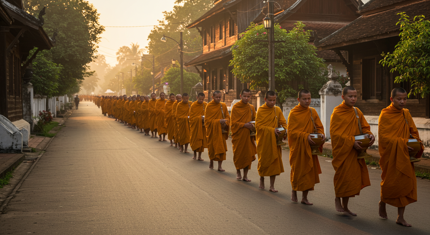 - 루앙프라방 : 새벽 공기를 가르며 이어지는 숭고한 의식, 탁밧(Tak Bat) 행렬에 참여하거나 경건하게 지켜보기