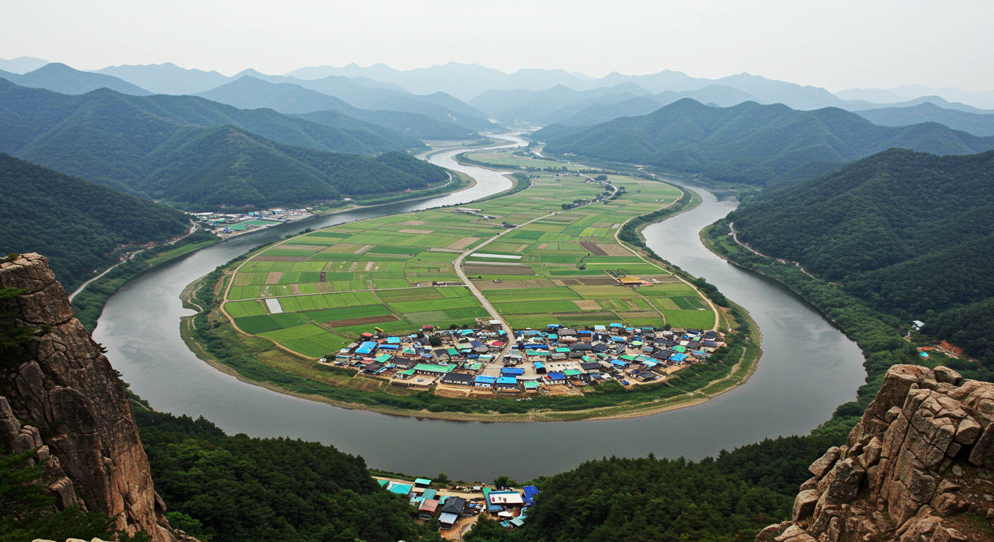 배산임수(背山臨水)의 명당: 마을 전체가 낙동강에 'S'자 모양으로 휘감겨 흐르는 모습이 마치 물 위에 뜬 연꽃 같다고 하여 '하회(河回)'라는 이름이 붙었습니다. 뒤로는 화산을 등지고 앞으로는 낙동강을 바라보는 전형적인 배산임수 지형으로, 풍수지리적으로도 최고의 명당으로 꼽힙니다.