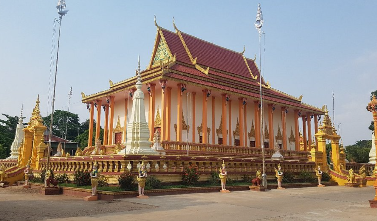 - 천 년의 시간이 공존하는 곳, 왓 노코르 (Wat Nokor): 캄퐁참을 대표하는 가장 중요한 사원 중 하나로, 이곳이 특별한 이유는 무려 11세기 앙코르 시대에 지어진 고대 사암 사원 유적과 그 위에 혹은 그 안에 자리 잡은 현대적인 불교 사원이 독특한 조화를 이루고 있기 때문이다. 천 년의 세월을 간직한 거대한 돌기둥과 벽면, 그리고 화려한 색채의 현대식 지붕과 불상들이 한 공간에 어우러져 시간의 중첩이라는 신비로운 경험을 선사한다. 캄퐁참의 깊은 역사와 현재의 신앙이 공존하는 상징적인 장소라 볼 수 있다.