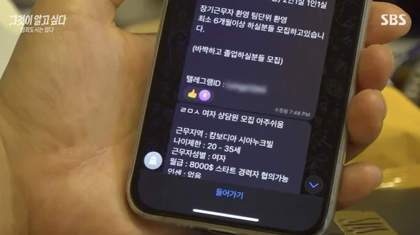 - SNS 타고 퍼지는 '달콤한' 취업 사기 미끼 : 범죄 조직은 페이스북, 인스타그램, 텔레그램 등 SNS를 통해 '월 수백만 원 보장', '숙식 제공', '쉬운 사무직' 등 허위 광고로 피해자들을 유인한다. 팬데믹 이후 경제적 어려움을 겪는 젊은 층이 주요 타겟이 되고 있으며 그들의 어려움을 교묘하게 이용한다.
