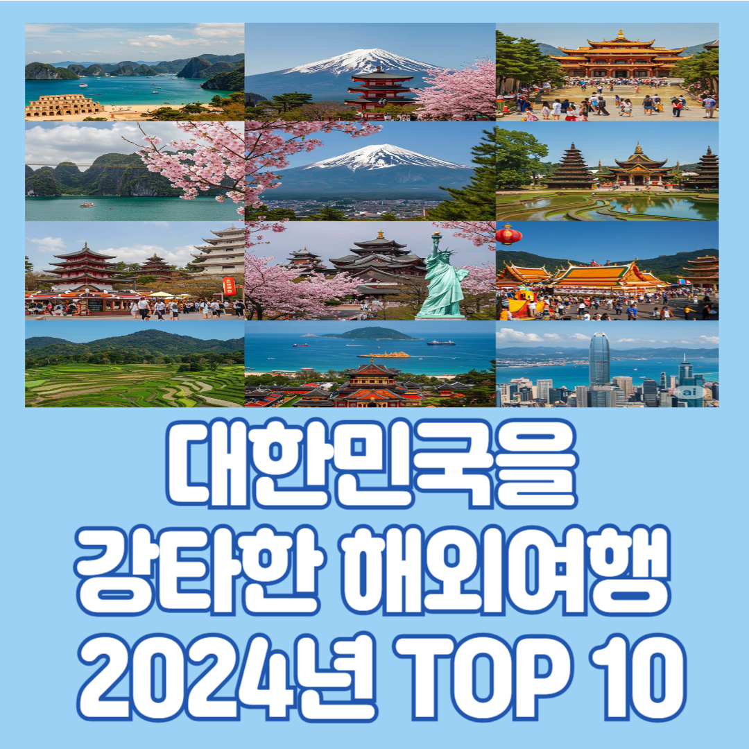 2024년 한국인이 가장 사랑한 해외여행지 TOP 10! 을 정리해 보았다. 일본의 압도적인 인기와 함께, 새롭게 떠오르는 핫한 여행지들의 활약이 돋보이는 한 해였다. 2025년에는 또 어떤 새로운 여행지가 우리를 설레게 할지, 이 글이 여러분의 다음 여행 계획에 조금이나마 영감을 주었기를 바라며, 오늘도 즐거운 상상 가득한 하루 보내시길 바란다.