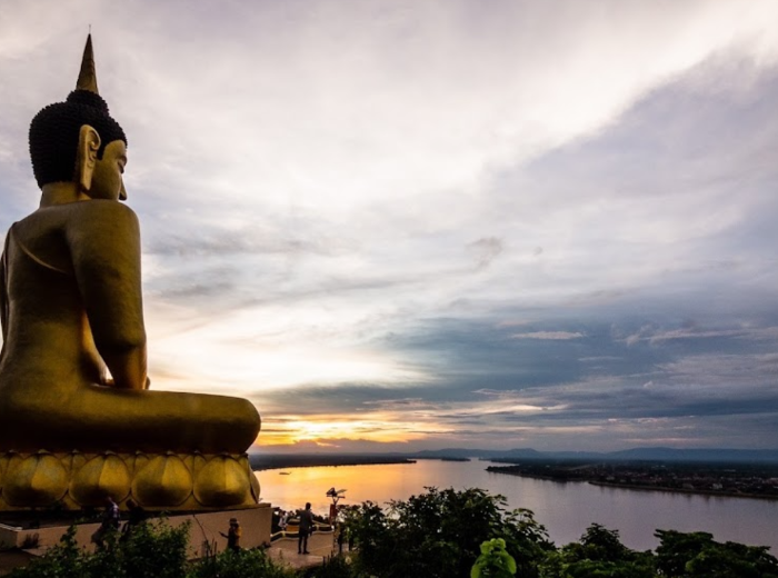푸 살라오 대불상 (Wat Phou Salao, 골든 붓다), 메콩강을 굽어보는 황금빛 미소, 최고의 일몰 명소