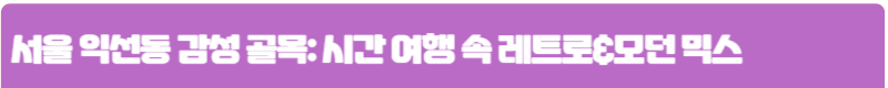 서울의 핫플레이스 리스트에서 익선동을 빼놓을 수 없죠! 1920년대에 지어진 한옥들이 완벽하게 보존된 채, 트렌디한 카페와 레스토랑, 아기자기한 가게들로 가득 차 독특한 분위기를 자아냅니다. 레트로 감성과 모던한 세련됨이 어우러진 익선동 골목은 걷는 곳곳이 포토존! 좁은 골목길을 거닐며 다양한 콘셉트의 한옥 외관을 배경으로 사진을 찍거나, 고즈넉한 한옥 카페에서 여유를 만끽하는 모습은 그 어떤 인스타그램 피드보다 매력적일 것입니다.
