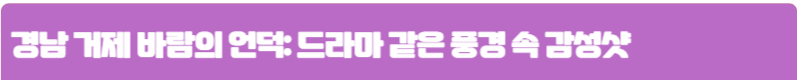 바다와 언덕이 어우러진 그림 같은 풍경의 거제 바람의 언덕은 그 이름처럼 시원한 바람이 불어오는 장소입니다. 초록빛 언덕과 푸른 바다가 어우러진 모습은 마치 드라마 한 장면 같아, 많은 여행자들이 찾는 감성샷 명소로 손꼽힙니다. 특히 풍차 앞에서 찍는 사진은 바람의 언덕의 시그니처 포토존이죠! 시원한 바다를 배경으로 드론샷을 찍으면 더욱 멋진 광경을 담을 수 있으며, 거제도 여행의 하이라이트를 장식할 것입니다.