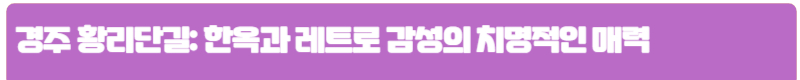 천년 고도 경주에 이런 곳이 있다니! 황리단길은 전통 한옥의 고즈넉함과 현대적 트렌디함이 놀랍도록 조화롭게 어우러진 곳입니다. 고풍스러운 한옥 사이사이에 숨겨진 감성 카페, 레스토랑, 아기자기한 소품샵들은 골목마다 포토존입니다. 마치 시간 여행을 떠온 듯한 레트로 감성과 세련된 인스타그래머블한 공간들이 만나 셔터만 눌러도 작품이 탄생하는 마법 같은 곳이죠. 한복을 입고 거닐며 특별한 추억을 만들어보는 건 어떨까요?