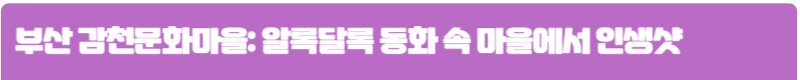 "부산의 산토리니"로 불리는 감천문화마을은 알록달록한 집들과 벽화, 미로 같은 언덕길이 어우러져 동화 속에 들어온 듯한 착각을 선사합니다. 마을 곳곳에 숨어 있는 귀여운 조형물들과 아기자기한 포토존들은 SNS 인증샷의 필수 코스! 특히 마을 전체를 배경으로 찍는 파노라마 샷은 압도적인 '좋아요'를 받을 거예요. 부산에 가면 꼭 들러야 할 감성 여행지 1순위입니다.