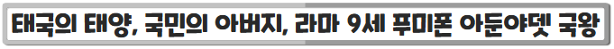 태국 현대사에서 빼놓을 수 없는 존재가 바로 국왕이다. 특히 푸미폰 아둔야뎃, 라마 9세는 태국 국민들에게 단순한 군주를 훨씬 뛰어넘는 존재였다.
