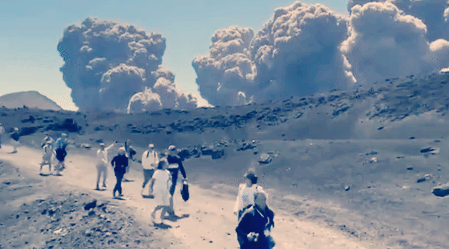 그런데 믿기 힘든 광경이 펼쳐진다. 일부 관광객들은 이 위험천만한 상황에서도 대피를 미뤄두고 스마트폰을 꺼내 화산 분화 장면을 배경으로 '인증샷'을 찍는 데 열중하는 것이다. 동행하던 현지 가이드들이 당황하며 "위험하니 빨리 대피하라!"며 애타게 외치자 마지못해 발길을 돌리는 모습까지 목격되었으니, 정말 황당할 지경이다.